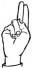 На ћирилици написано ЈАБУКА ЋОКИЋ састоји се из 11 слова [?]. Исписано ћириличном једноручном азбуком за глувонеме: